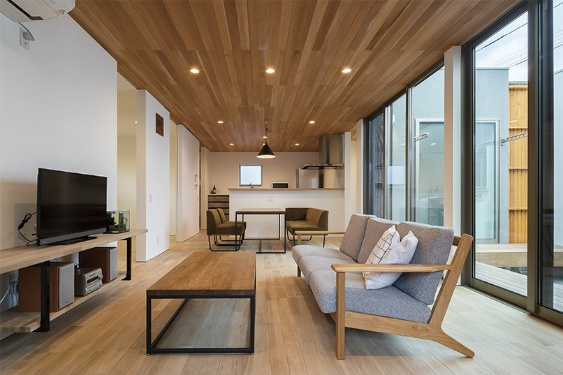 室内は、仕切りや廊下を極力省いた開放感のあるLDKに中庭から光が降り注ぎ、センスの良い家具を置けばまるでインテリアショップのようなおしゃれな雰囲気に。「ヴィンテージ&モダン」という相反するものが共存する遊び心満載の家が完成しました。