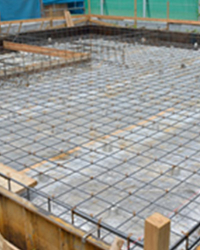 建物の床下全体に鉄筋コンクリートを一体で施工する工法で、建物の重さを面で支えることで、地震や地盤のゆれにも強くなります。また、地面からの湿気やシロアリの侵入も防ぎます。 -